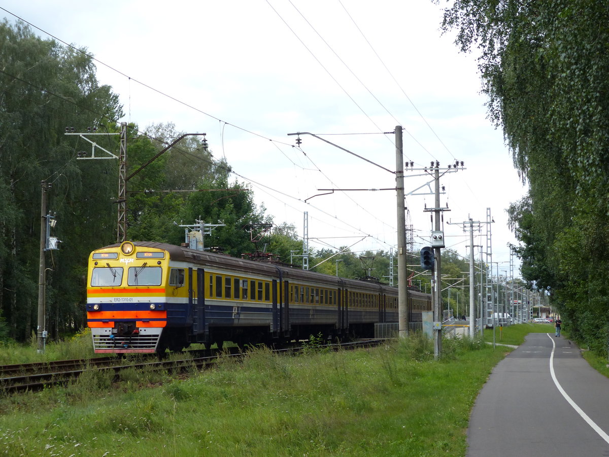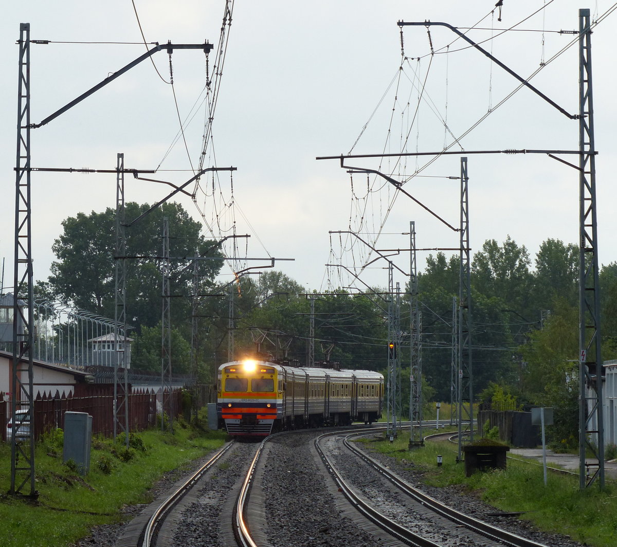 Gut genutzt werden die Züge in den Badeort Jūrmala. Einige der hier verkehrenden Züge fahren bis Sloka oder weiter nach Ķemeri, wo es einen Nationalpark zu besichtigen gibt. ER2-3034-01 am 9.8.2016 nahe Dubulti.