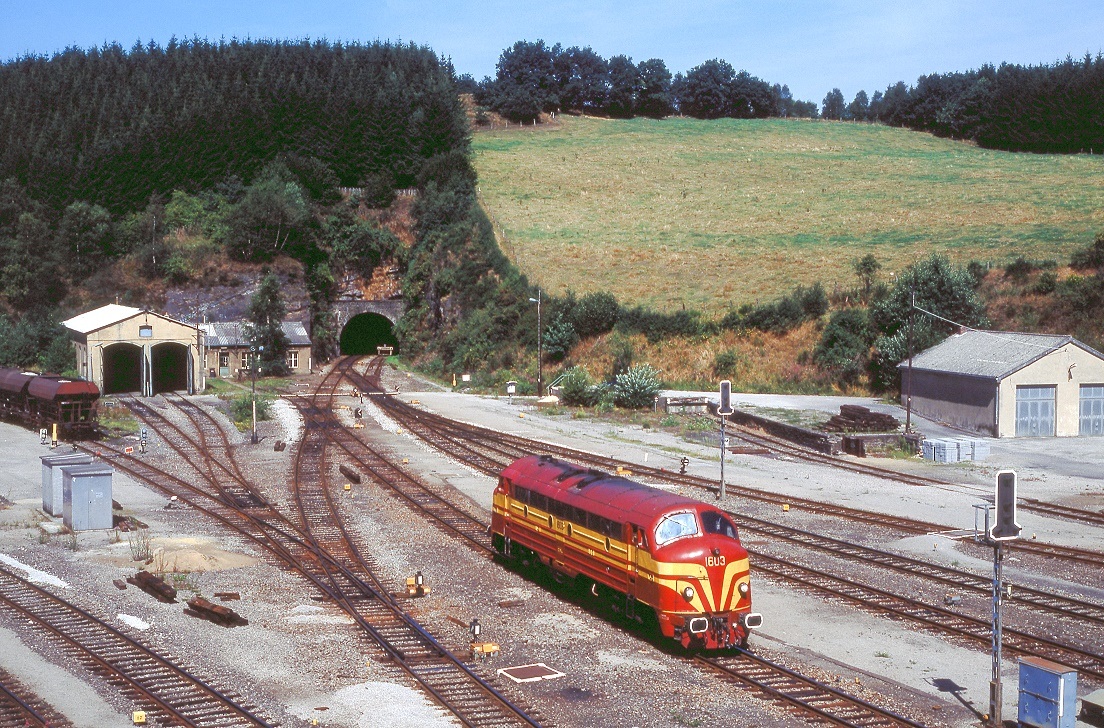 E-Lok 4017, mit der neuen Werbung, hat ihren Zug in den Bahnhof von Troisvierges geschoben und wartet nun auf die nächste Fahrt nach Mersch am 23.03.08.