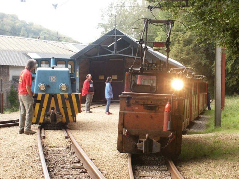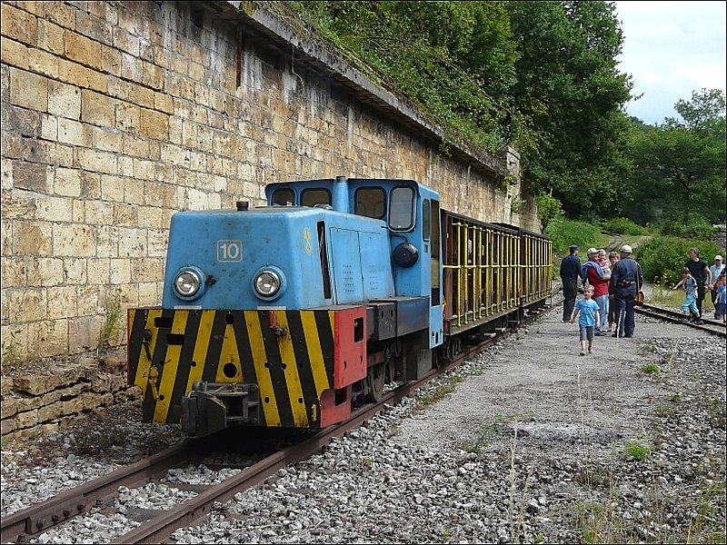 Hier sieht man den Eingang zum Stollen der Grubenbahn Minièresbunn Doihl in Lasauvage mit der Diesellok N° 10 Batiruhr 26110 BED (BJ 1960) und Originalgrubenwagen. 19.09.04