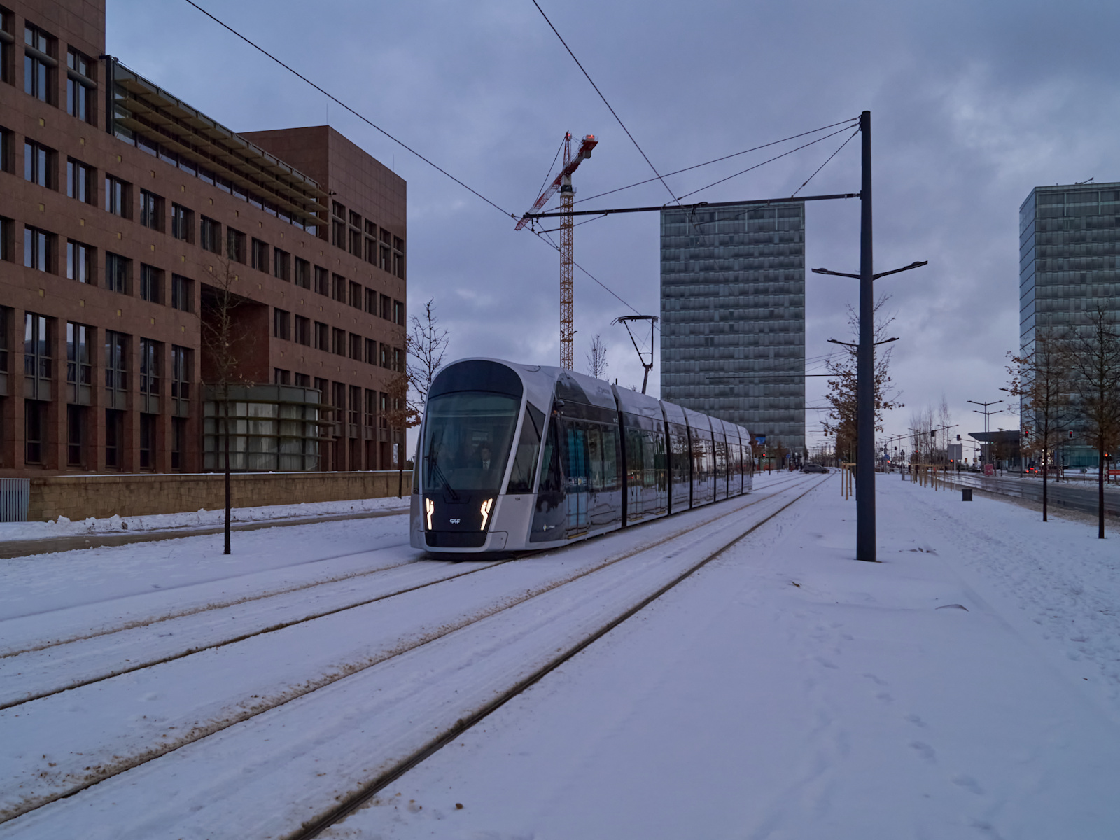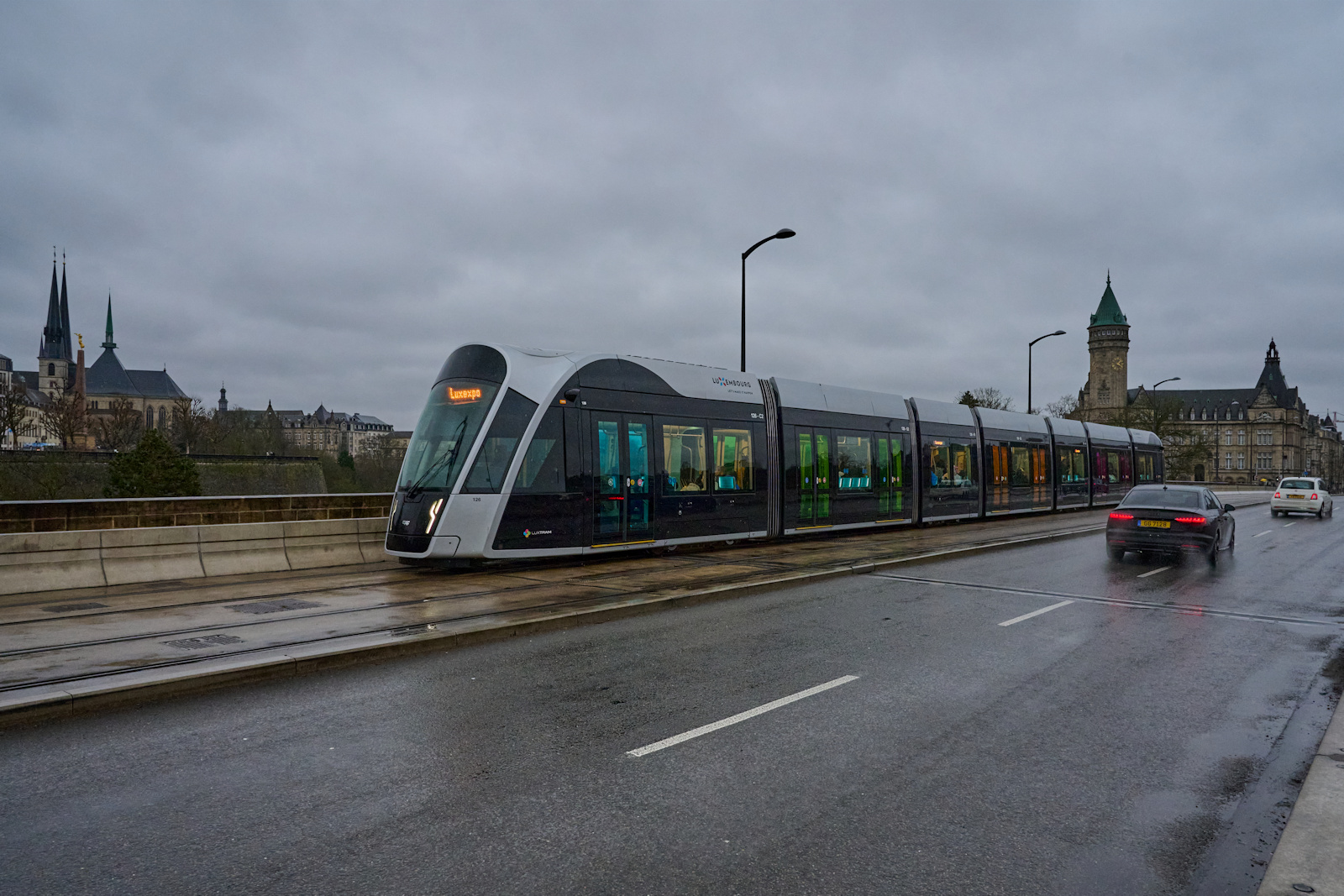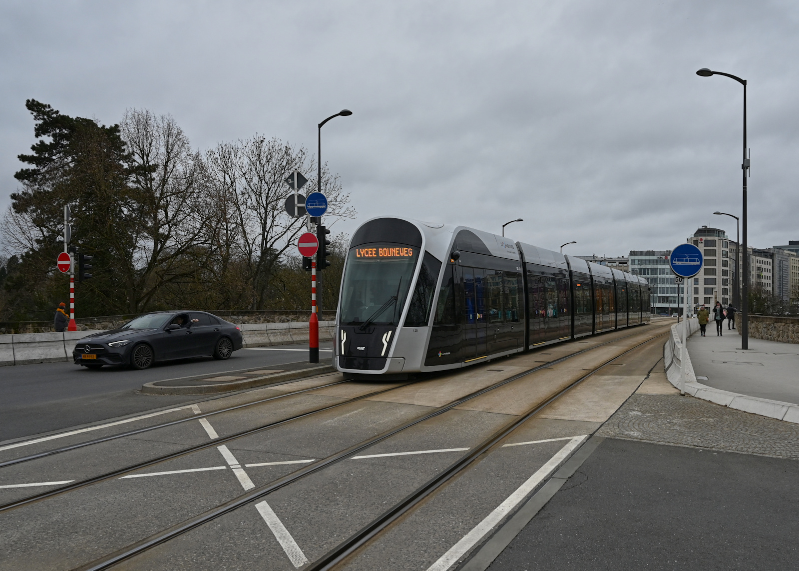 eine sehr schöne Aufnahme von der modernen Luxemburger Straßenbahn im "Frühlingsambiente".