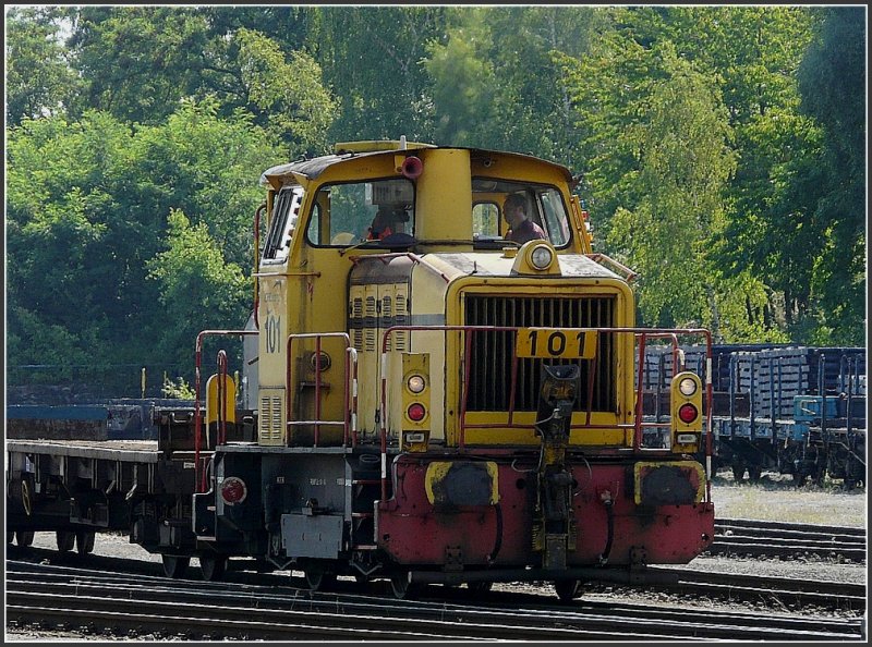 Ex Arbed Differdange, jetzt CFL Cargo MaK Rangiertraktor 101 (BJ 1968) durchfährt am 24.02.09 den Verschiebebahnhof von Pétange. (Jeanny)