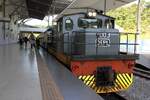 JKNS 7003 (Hersteller: OEPL, Ovis Equipments Private Ltd., Indien, Type: YHD 800 48, Baujahr 2023) ist am 15.Februar 2025 mit dem, nur an Samstag verkehrenden, Touristenzug "TRAIN TO MUARA SUNGAI BENONI" in der Stesen Tanjung Aru angekommen.