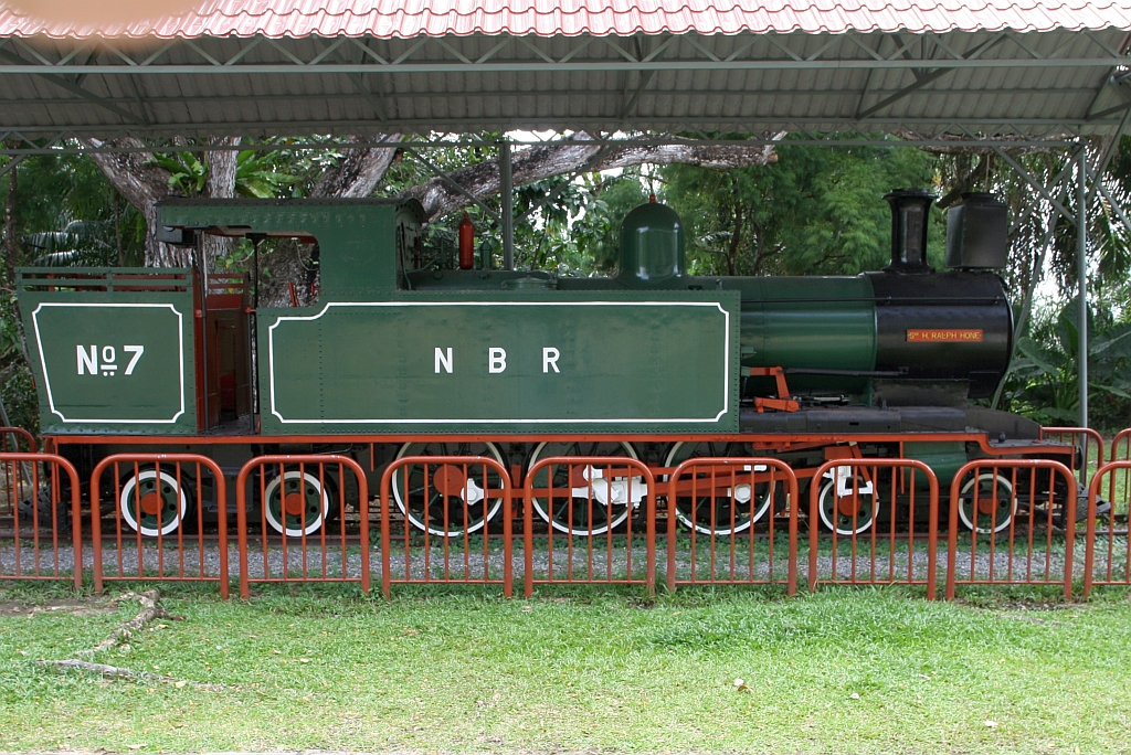 NBR No.7 am 09.Februar 2025 im Muzium Sabah in Kota Kinabalu. - 1912 von Hunslet Engine Co. Ltd., Leeds / England (Fabr.Nr. 1092) gebaut erhielt die Lok die NBR-Nummer 14 und den Nahmen KINABALU. 1953 wurde die Lok in “Sir H. RALPH HONE” umbenannt. 1954 erhielt die Lok dann die neue NBR-Nummer 7 und wurde 1968 ausgemustert.