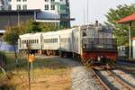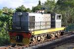 JKNS 7002 (Hersteller: OEPL, Ovis Equipments Private Ltd., Indien, Type: YHD 800 48) schiebt am Morgen des 16.Februar 2025 als Verschubfahrt im Bereich des ehemaligen Terminal Muatan den Wagensatz des PU201 (Beaufort - Sembulan) von der Stesen Sembulan nach der Stesen Tanjung Aru.