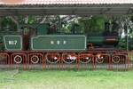 JKNS 7002 (Hersteller: OEPL, Ovis Equipments Private Ltd., Indien, Type: YHD 800 48) schiebt als Verschubfahrt den Wagensatz des PU502 (Beaufort - Sembulan) von der Stesen Sembulan nach der Stesen Tanjung Aru. - Bild vom 16.Februar 2025 auf der EK mit der Jalan Pintas Penampang im Strecken-Km.4,10.
