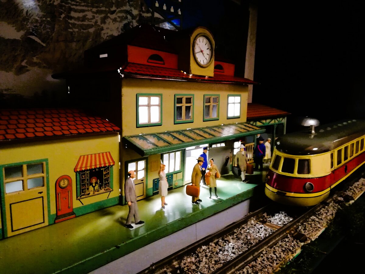 Diorama Spur 0 Antik 1930er/1950er Jahre Bahnhof BUB (KBN) mitMärklin TW 930  PW