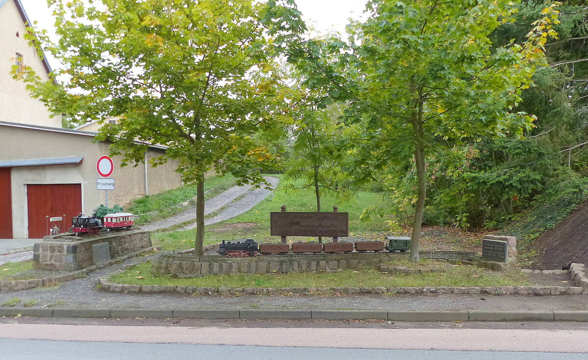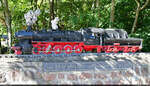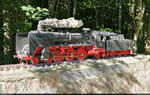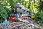 DR V60 100-3 als 1:10 Steinmodell am 28.09.2019 am ehemaligen Bahnhof Gerbstedt.