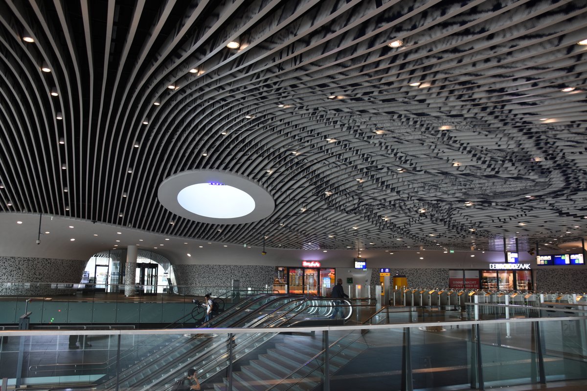 DELFT (Provinz Zuid-Holland), 06.08.2017, Delft Station, ein nagelneuer, moderner Bahnhof mit im Tunnel (erbaut zwischen 2009 und 2015) befindlichen Gleisen; links ist das alte Bahnhofsgebäude erkennbar