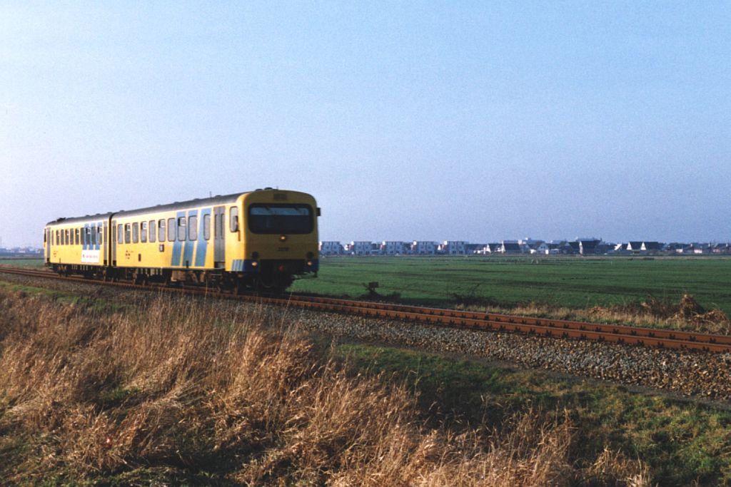 DH2 3224 und DH1 3103 während eine Sonderfahrt Stiens-Leeuwarden auf das Endpunkt der ehemalige Güterstrecke Stiens-Leeuwarden in Stiens am 11-4-1992. Bild und scan: Date Jan de Vries.