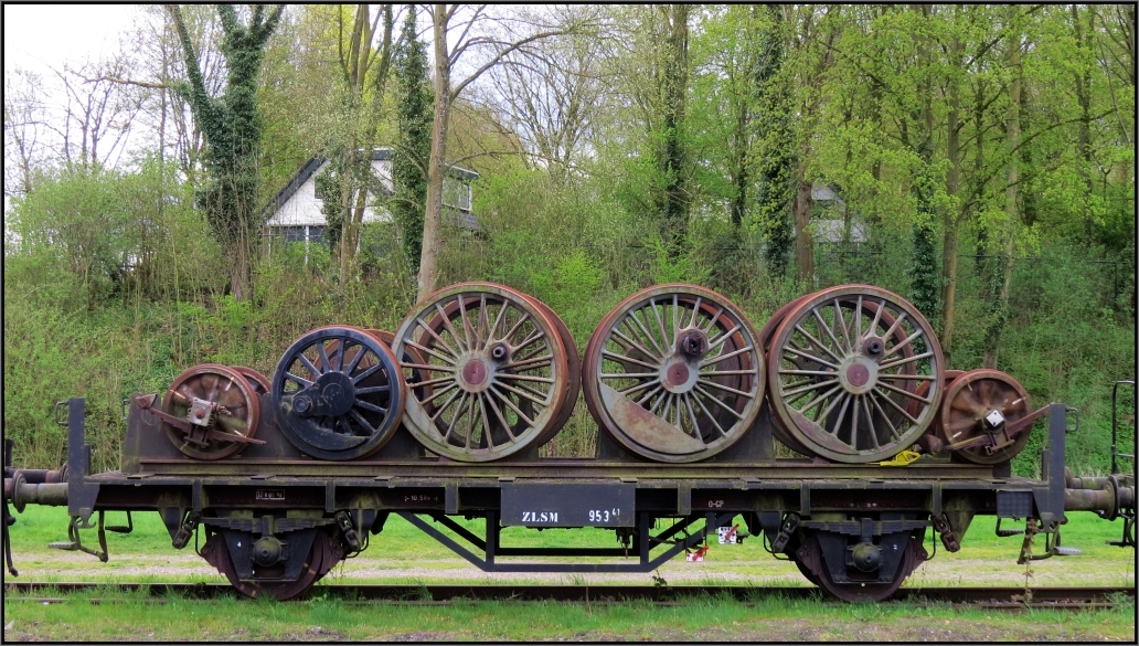 Ein Güterwagen älterer Bauart, beladen mit Radsätzen, stand am 17.April 2016 bei der Museumsbahn der ZLSM in Simpelveld (NL) als Motiv zur Auswahl.