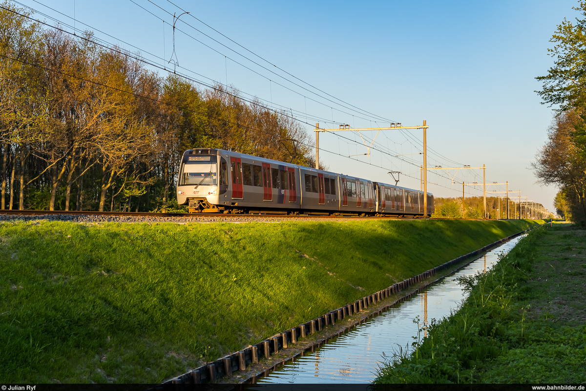 Einfahrt eines Metrozuges in die Hochbahnstation Pernis.