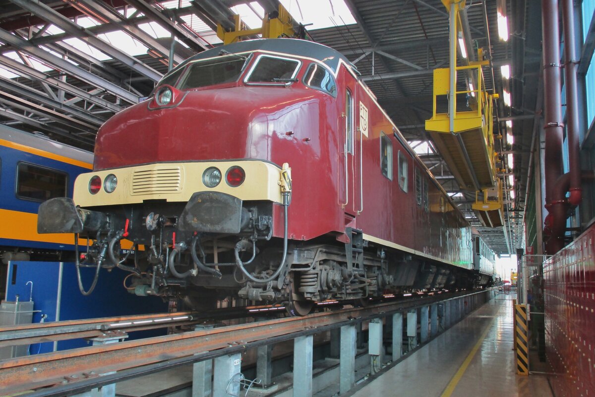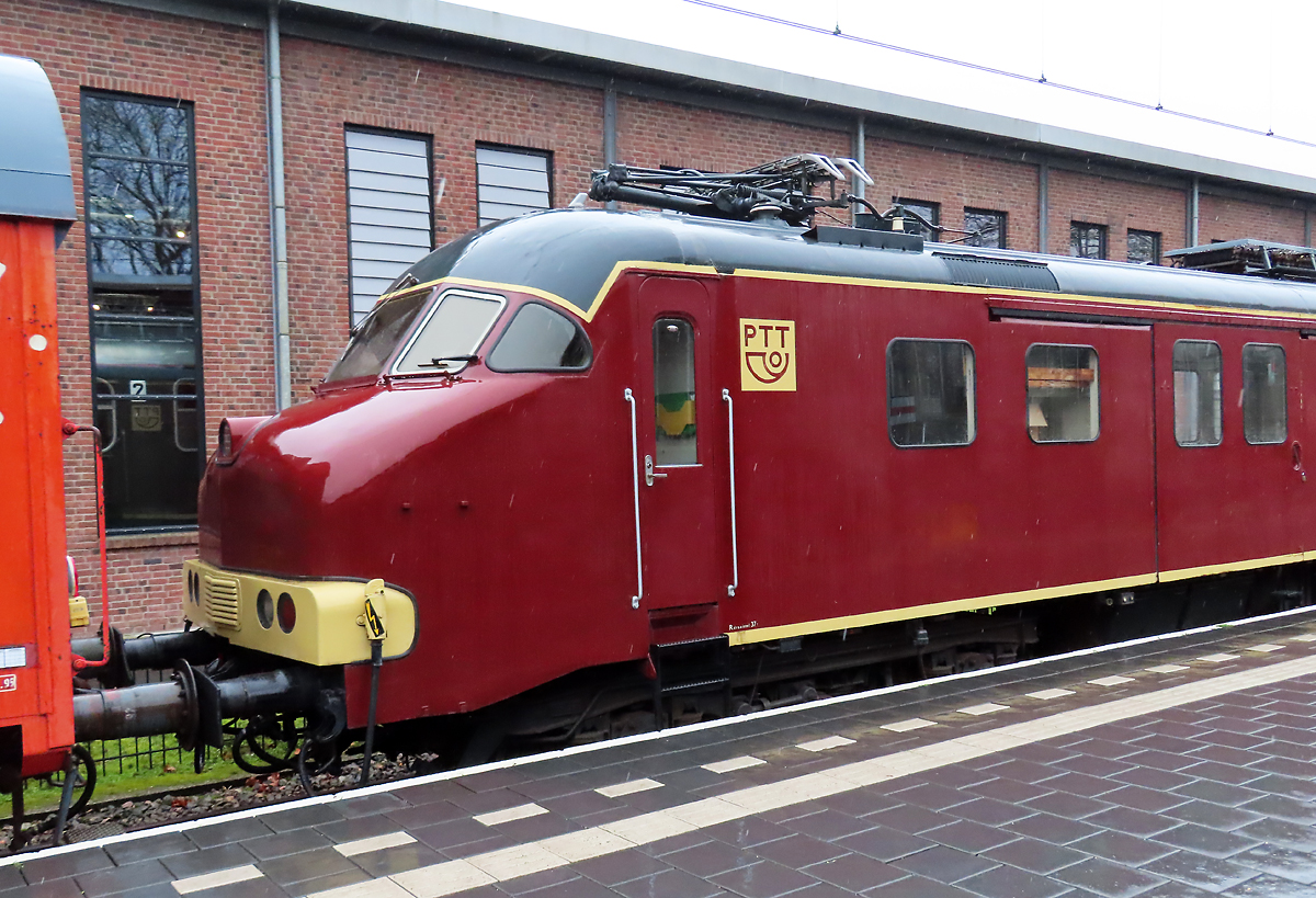 Elektrischer Triebzug für die Post im Nederlands Spoorwegen Museum in Utrecht. Wegen diversen Bauten auf dem Bahnsteig war leider nur eine Teilansicht dieses Zuges möglich. Utrecht, 7.3.2023 Markus Gmür