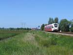 Arriva Stadler bei der Ausfahrt im Bahnhof Leer(Ostfriesland)5.6.2011