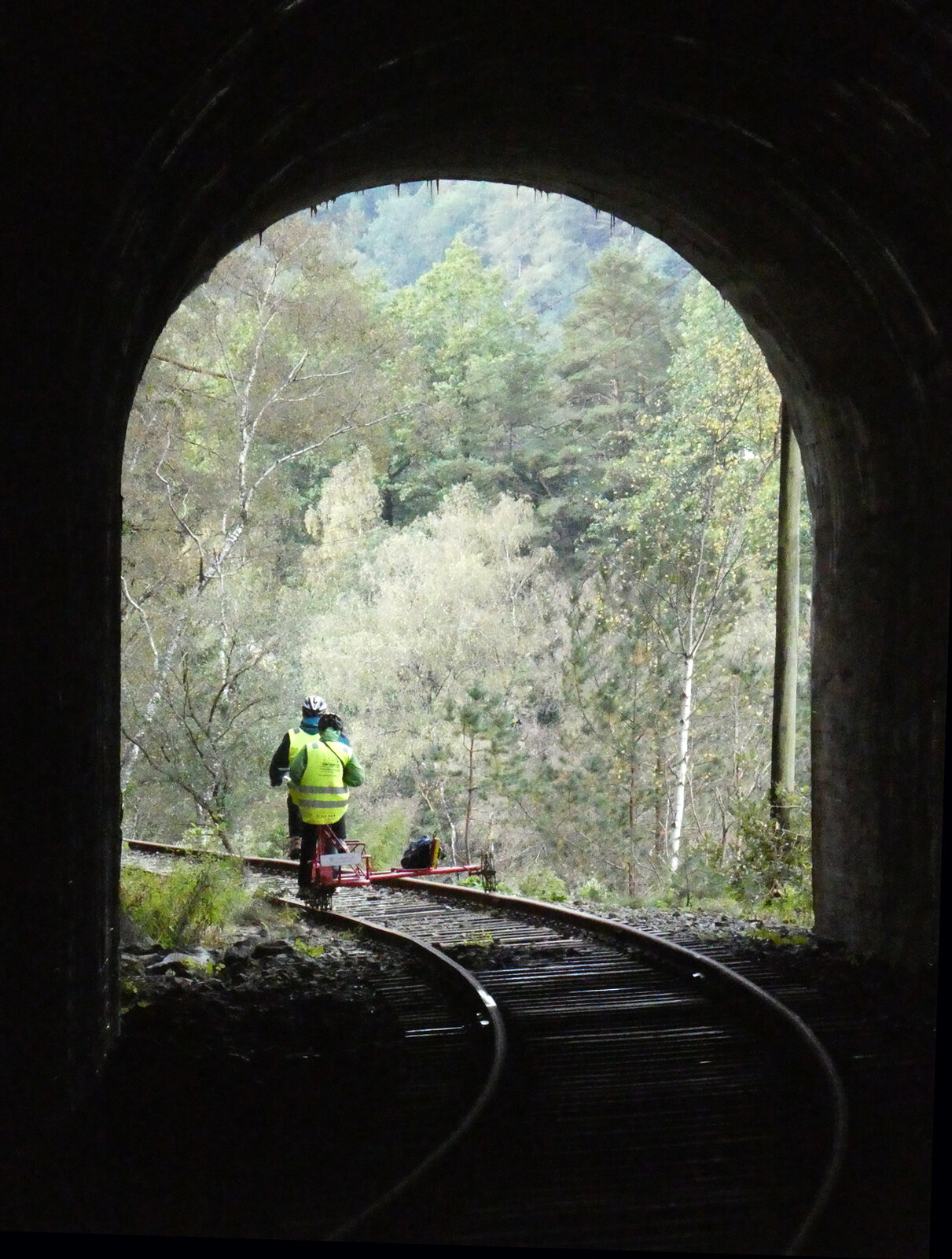 Das einzige Licht in den Tunnels kommt jeweils von der Stirnlampe! Alles in allem ein sehr lohnendes Schienenabenteuer, diese Schienenvelofahrt in Flekkefjord, das war ein ganz eindrückliches Erlebnis. Flekkefjord, 9.9.2024