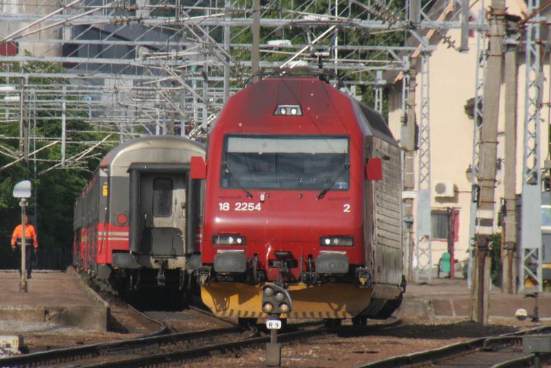 Der Bahnhof Halden mit Bm 73.145, El 14.2177, Skd 226.33 und BM 73.116. Im Hintergund ist die Festung Fredriksten zu sehen; 02.06.2009