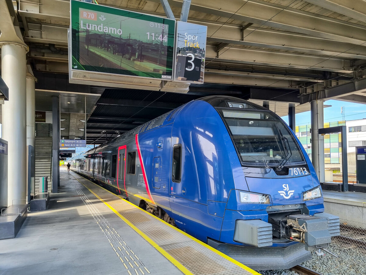 Die Dual-Mode-Triebwagen der Baureihe 76 der SJ Nord kommen vorwiegend im S-Bahn-Verkehr rund um Trondheim zum Einsatz. 76512 steht am 27.05.2023 im Bahnhof Trondheim und hat eine längere Fahrt vor sich. Als R60 verkehrt der Zug über die nicht elektrifizierte Rørosbanen nach Hamar.