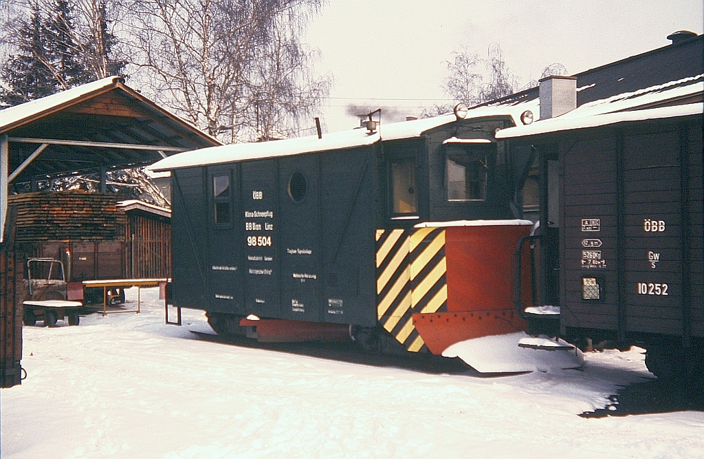 Klimaschneepflug 98 504 am 27.Februar 1982 in der Zf. Garsten. (Diascan)