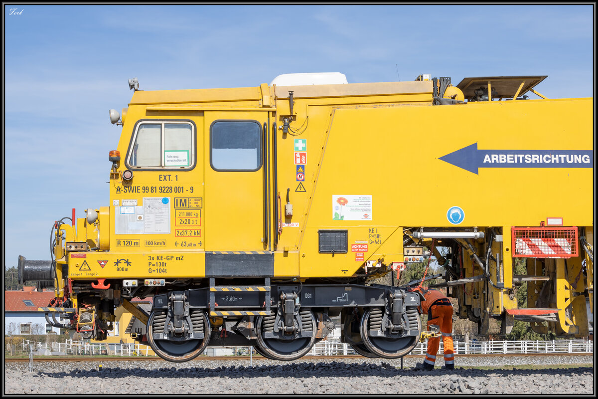 Am 24.04.2007 bei Kirchdorf/Krems Oberösterreich konnte ich durch Zufall einen im Arbeitseinsatz stehenden Schienenumbauzug fotografieren. Durch die günstige Lage der Strecke direkt an der B138 und die dort kurz vorher endende Lärmschutzwand war diese Aufnahme möglich.