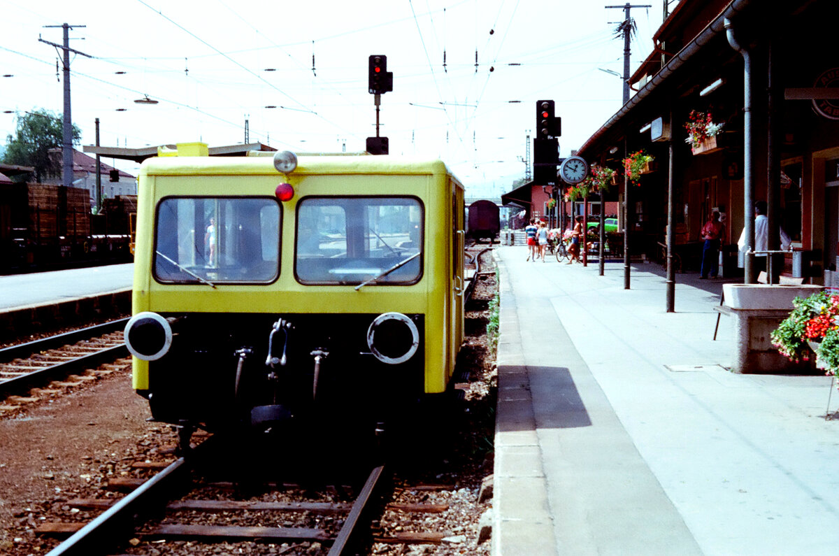 Rege Bauarbeiten vor dem Bahnhof Bad Gleichenberg. Rechts neben dem Bahnhof wartet einer der beiden ETs (ET 1 bzw. ET 2 ?) auf seine wenigen Fahrgäste.