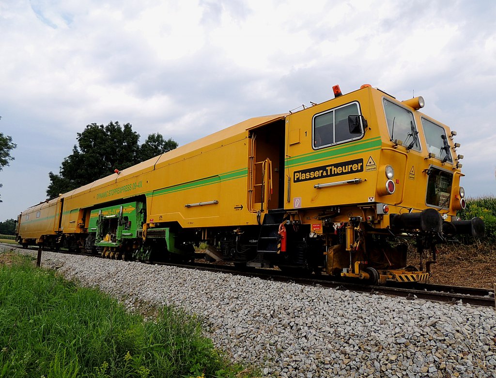 BDS-2000 Schotterbewirtschaftungssystem und Dynamic-Stopfexpress(09-4XDynamic; Maschnr.:3274; Bj2007) sind am Rieder Bahnhof abgestellt; 120509