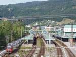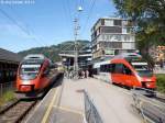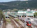 Bahnhof Bregenz im Winter: Begegnung unterschiedlicher österreichischer Schienenschönheiten, ÖBB 6030.318 und ÖBB 1020.33
