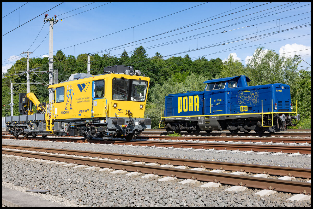 Ein Zweiwege LKW im Bahnhof St. Martin im Sulmtal Bergla . An diesem sonnigen 30.Juni 2022 ist er Unterwegs nach Wies Eibiswald.