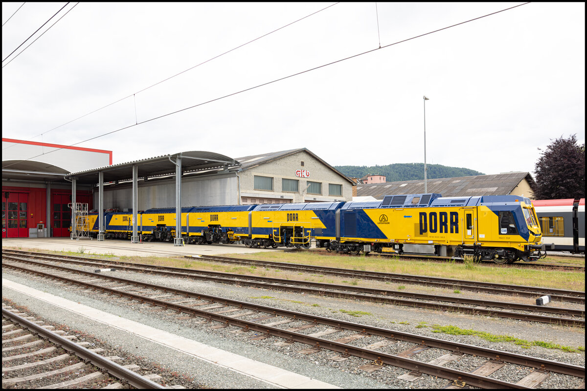Ein Schienenschleifzug im Bahnhof "Graz Köflacher Bahnhof" am Abend es 28. Mai 2025