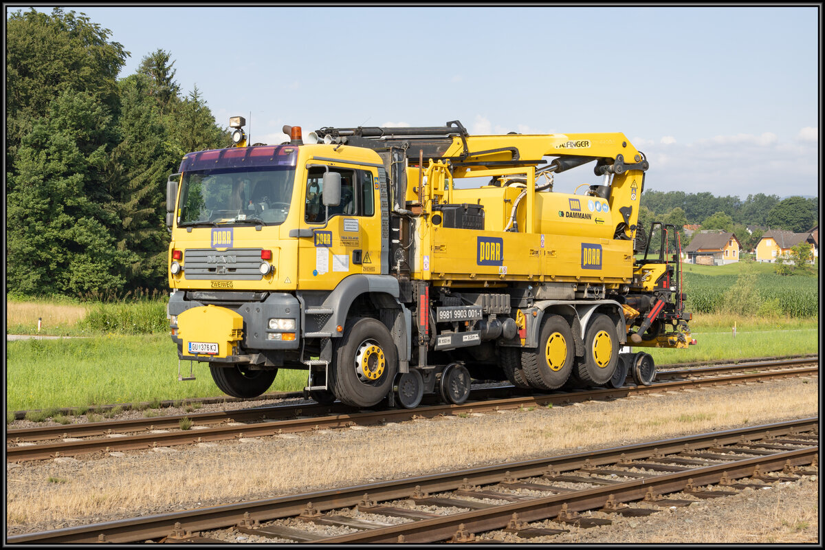 Ein Zweiwege LKW im Bahnhof St. Martin im Sulmtal Bergla .