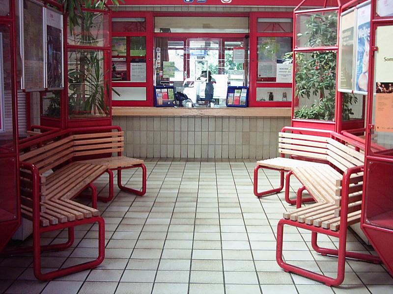 Die Wartehalle bzw. Empfangshalle des Bahnhofes Hohenems