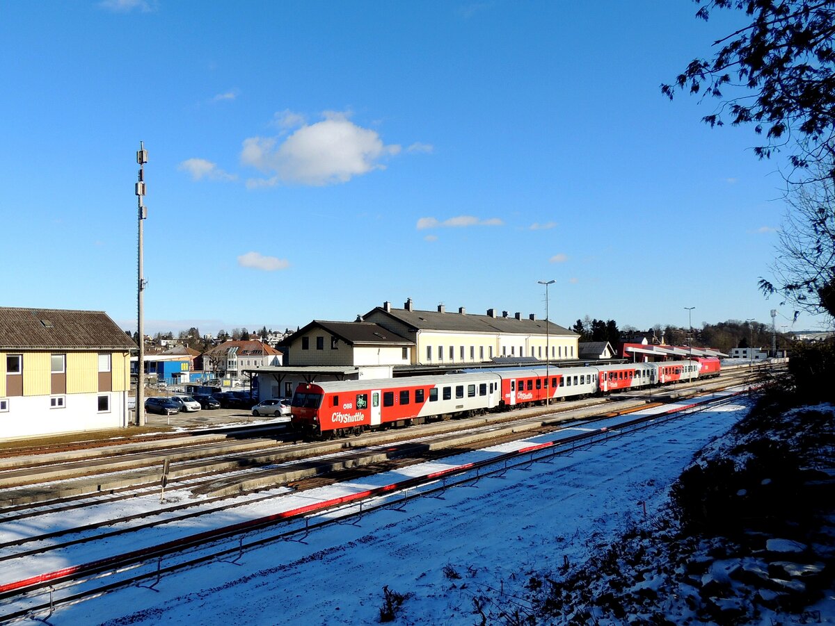 4-teilige CityShuttle-Garnitur verlässt als R51-5968 den in Umbau befindlichen Bhf. Ried; 260104