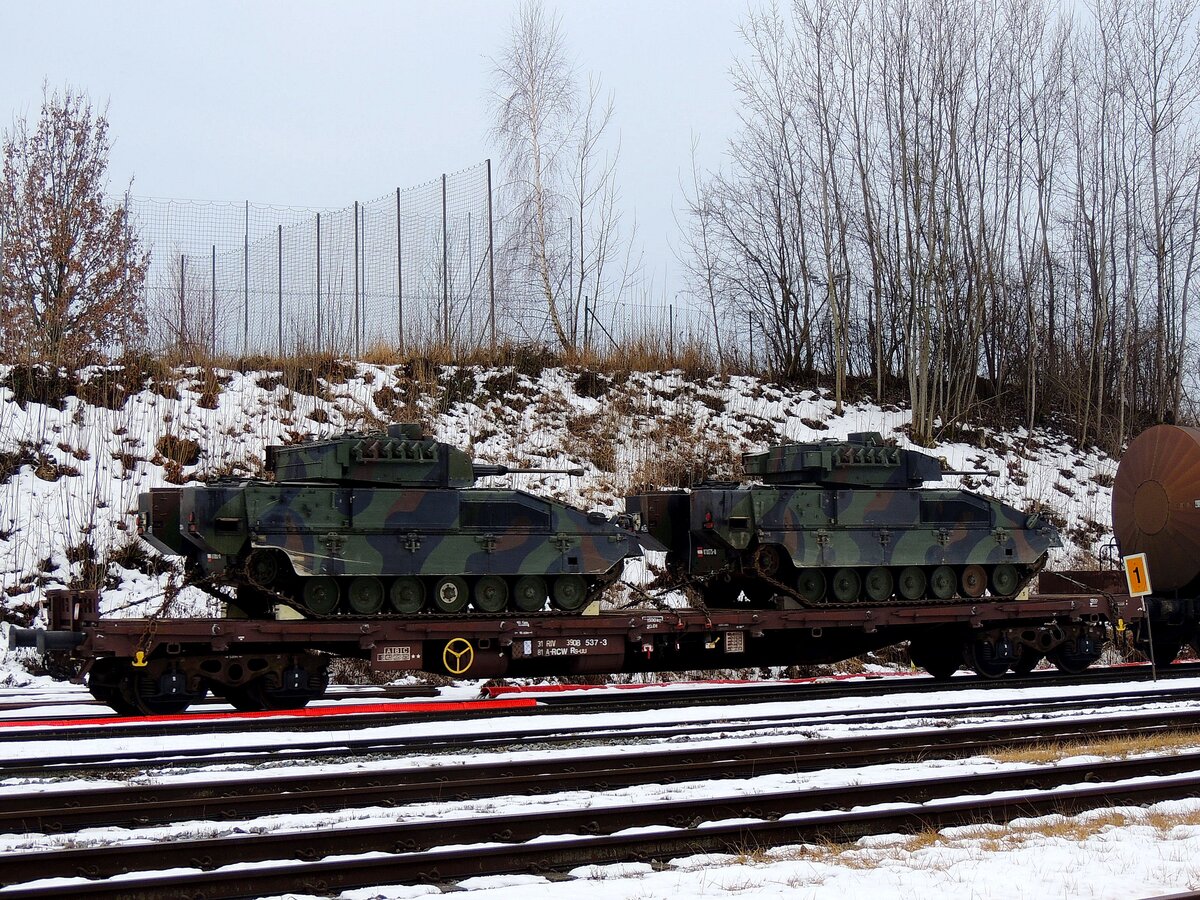 Rs-uu 31 81 3908 537-3 verlässt mit 2 Panzer beladen, den Bhf. Ried; 260130