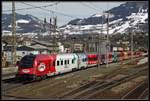 Smartrail 111 057 verlässt mit dem Ski-Express von Malmö Central nach Innsbruck Hbf den Bahnhof Schwarzach St. Veit. (30.12.2022)
