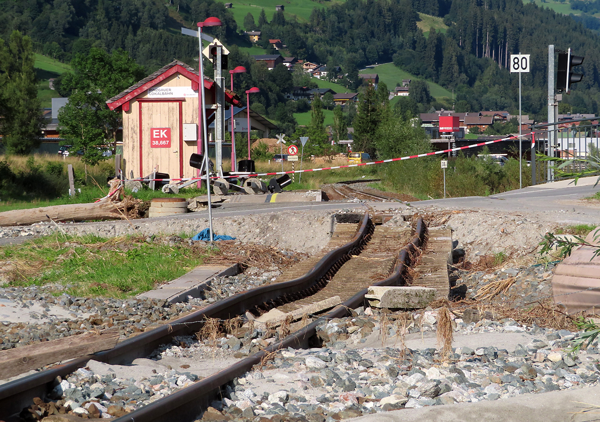 Schranken bei der Einfahrt in den Bf. Wetzleinsdorf mit typischem Weinviertler Hintergrund am 06.Oktober 2012.