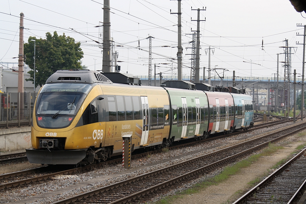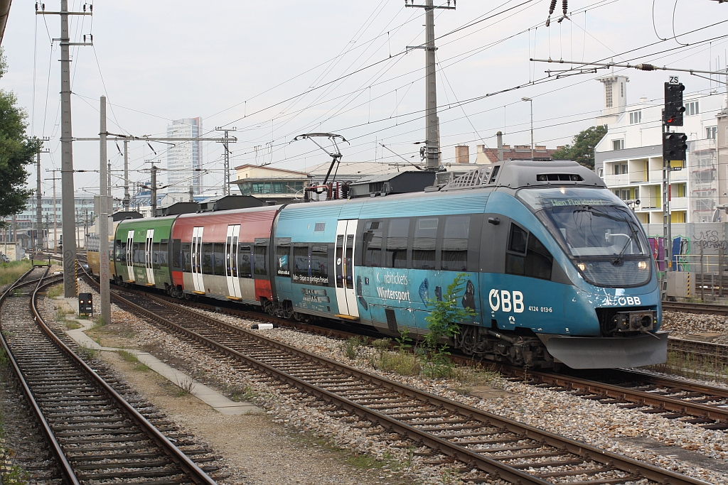 Und noch einen Nachschuss auf diesen schönen, bunten 4124 013 beim verlassen der Station Wien Praterkai nach Wien Hitschstetten. Aufgenommen am 16.05.2013.
