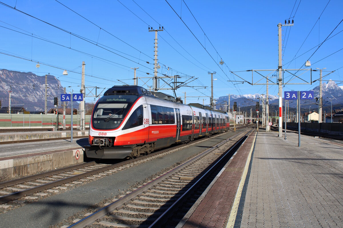 ÖBB 1016 012, 1016 021 "Gösser" und 1016 038 rangieren in Wörgl an den Bahnsteig, um anschließend als Lokzug in Richtung Kufstein aufzubrechen. (30.12.2022)