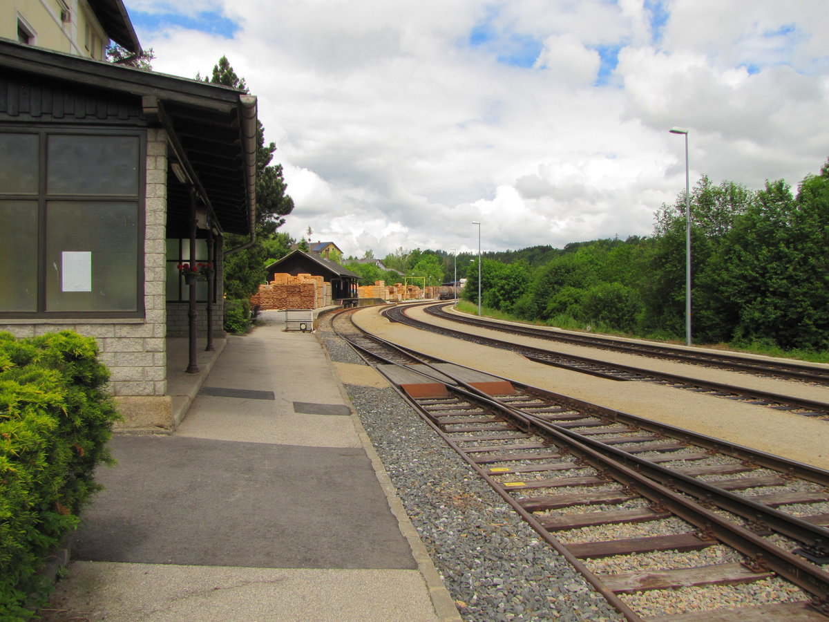 Ein Teil der Gleisanlagen im Bahnhof von Zwettl am 01.06.2016.
