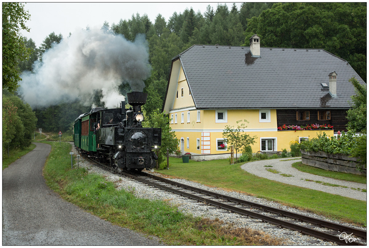 Die STmLB Dampflok 6 "Thörl" fährt auf der Taurachbahn von Sankt Andrä im Lungau nach Mauterndorf. Mariapfarr 28.07.2019