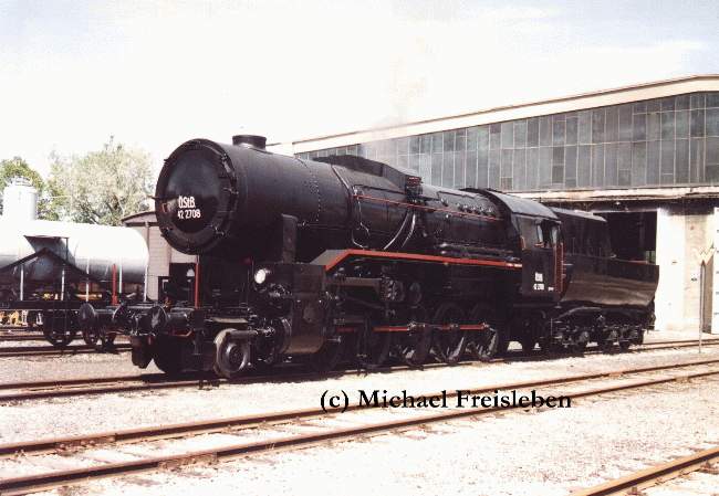 Die erste, nach dem 2. Weltkrieg in Österreich gebaute Lokreihe war die Baureihe 42. Die letzte in Österreich erhalten gebliebene 42er, die 42.2708 fristet nun im Heizhaus Strasshof ihr Dasein. Bild vom 21.April 2013.