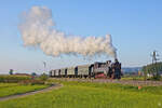 Tenderseite vorn treft ÖGEG 77.28 am mottigen Morgen von 10 September 2022 mit ein Dampfpendelzug in Benesov u Prahy ein während das Spektakel STEAM53. Leonardus Schrijvers