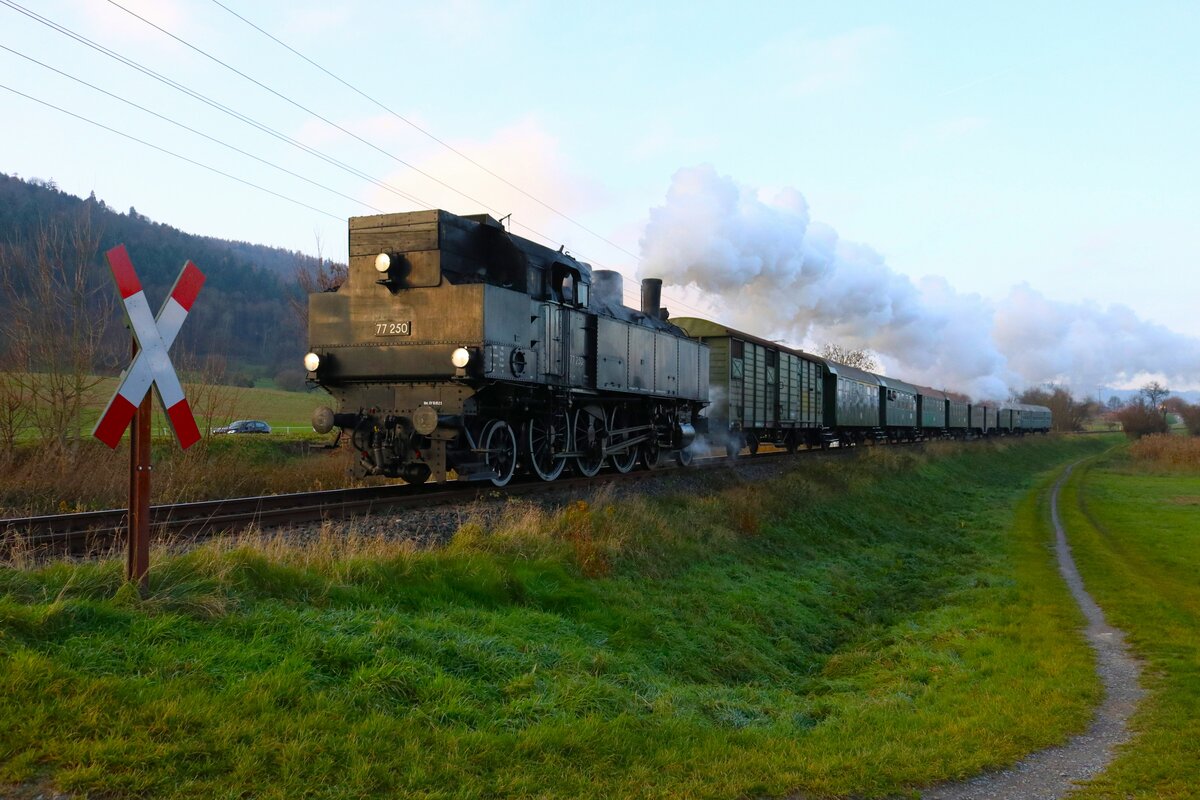 Auf geht`s auf den Zug für die 77iger . Am 29. Juni 2024 rollte die Dampflok über das Gelände des ÖGEG in Ampflwang .