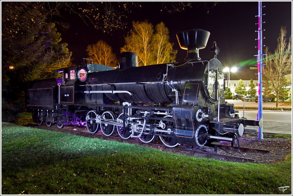 Im März 1975 waren schon vor Jahren ausgemusterte Dampfloklokomotiven in einer langen Reihe auf den Gleisen des Heizhauses Straßhof abgestellt, dazu zählte auch dieser Torso einer ÖBB-Zwillings-57 (ex kkStB Reihe 80)