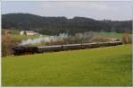 Straße und Schiene gehen hier getrennte Wege. 93.1420 am 22.4.2010 mit ihrem Fotoperser von Retz nach Drosendorf kurz nach Langau aufgenommen.