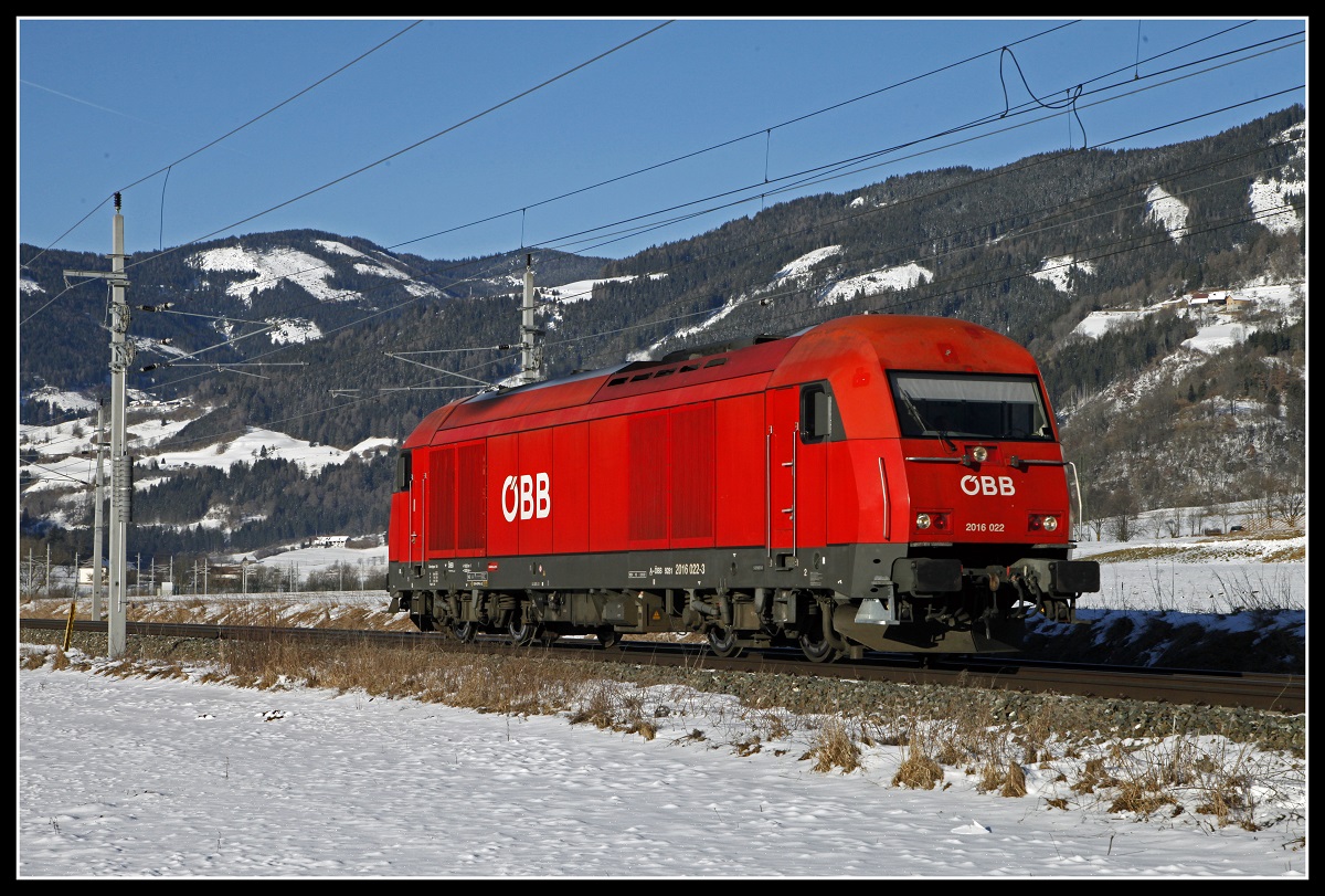 2016 022 als Lokzug bei St.Georgen ob Judenburg am 7.02.2020.