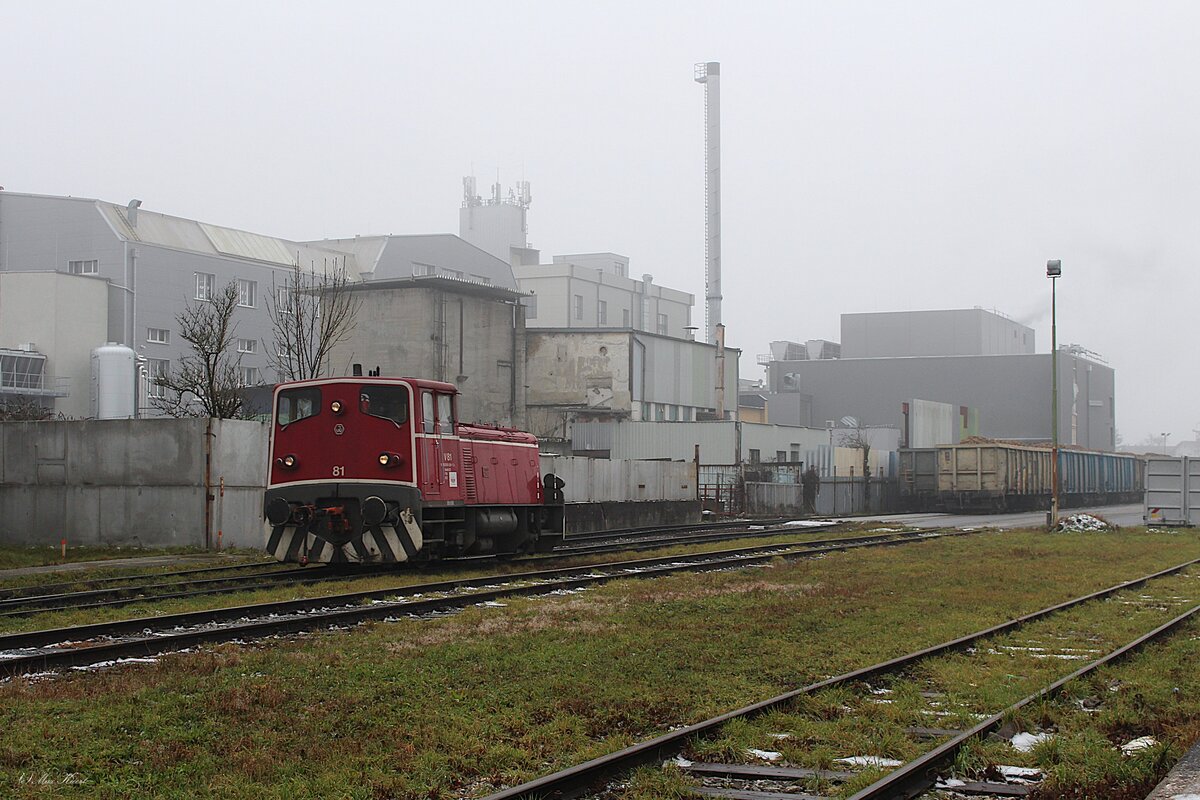 2001 kam die Verschublok als V81 zur SLB und anschließend zur Agrana nach Enns.