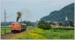 Fast genau 130 Jahre war es am 25.7.2015 her als die Radkersburgerbahn zwischen Spielfeld-Straß und Radkersburg eröffnet wurde. Zu diesem Jubiläum organisierte die IG Neue Radkersburgerbahn mit der 2143.35 sowie drei Zweiachser eine Sonderfahrt von Graz über Spielfeld-Straß nach Bad Radkersburg und zurück sowie eine Pendelfahrt von Bad Radkersburg nach Mureck. Hier verlässt der stilechte Sonderzug den Bahnhof Spielfeld-Straß in einem engen Rechtsbogen in Richtung Bad Radkersburg.