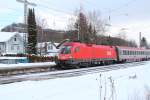 EC 113 wird am 10. November 2018 von der Klima- und Umweltschutz Lok 1016 020 bespannt. Aufgenommen bei der Einfahrt in Ulm.