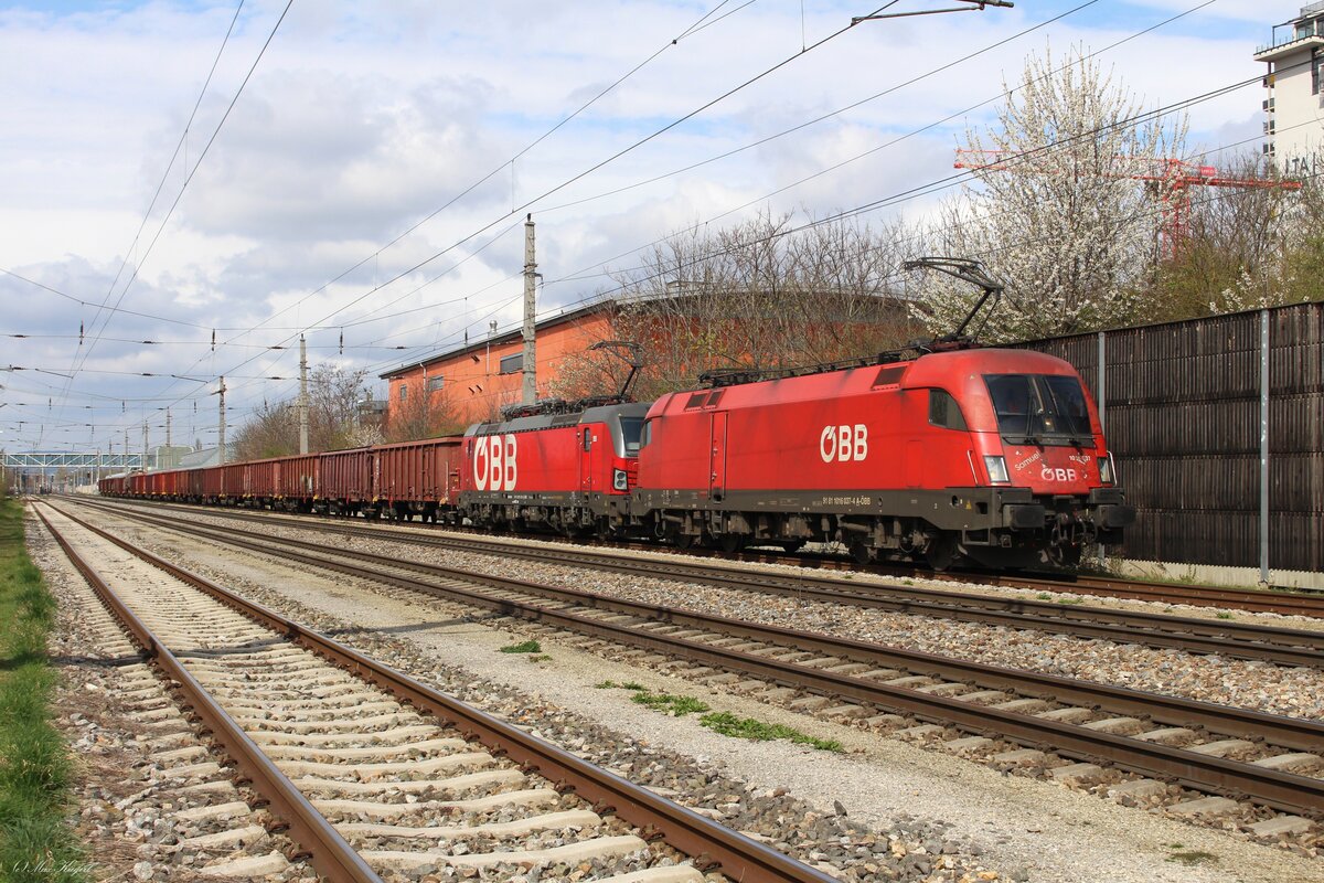 1016 029 der ÖBB mit Güterzug bei der Durchfahrt durch den Bahnhof Aßling nach Süden (Strecke München - Rosenheim). 22. September 2017