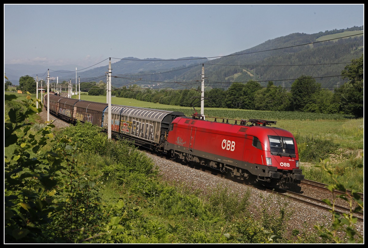 1016 031 mit Güterzug bei Niklasdorf am 26.06.2019.