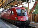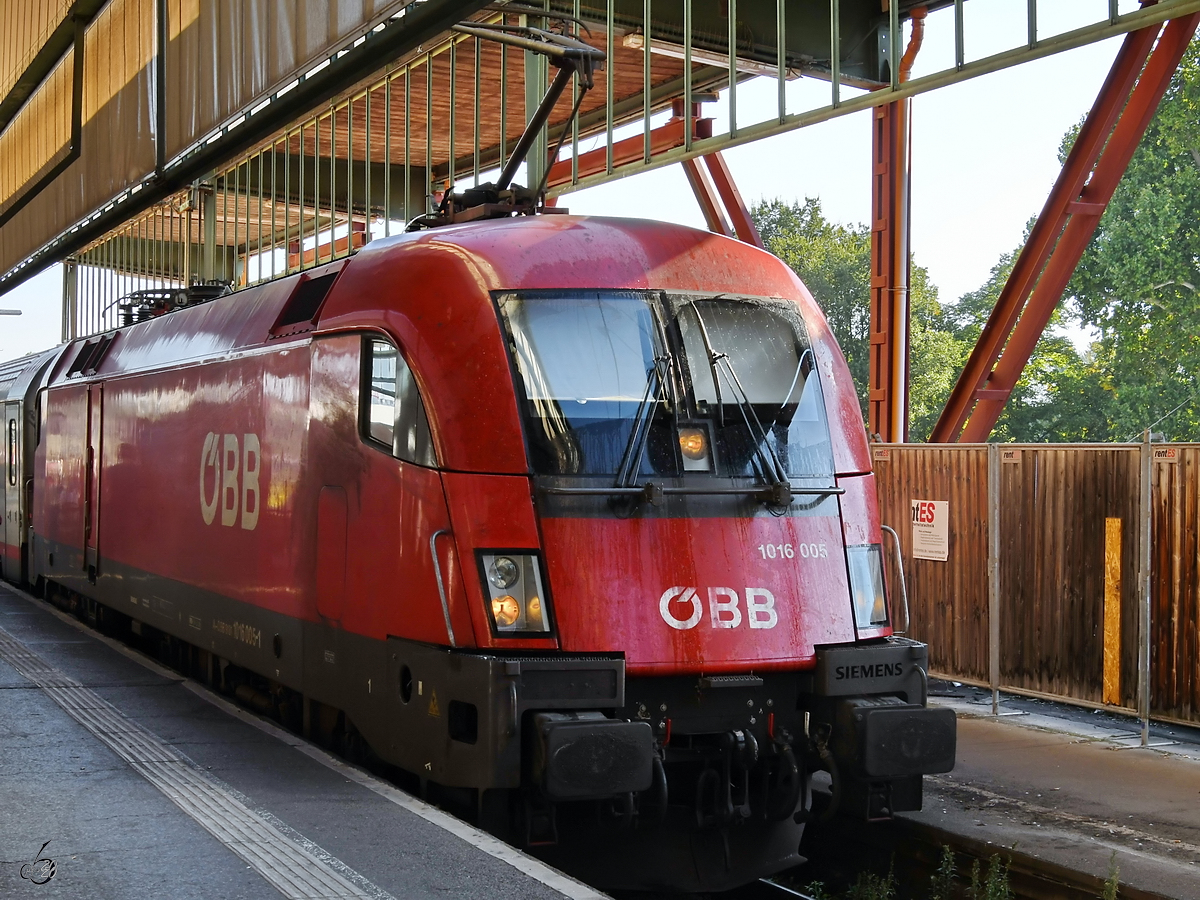 Die Elektrolokomotive 1016 005 der ÖBB Mitte September 2019 nach der Ankunft am Hauptbahnhof Stuttgart.