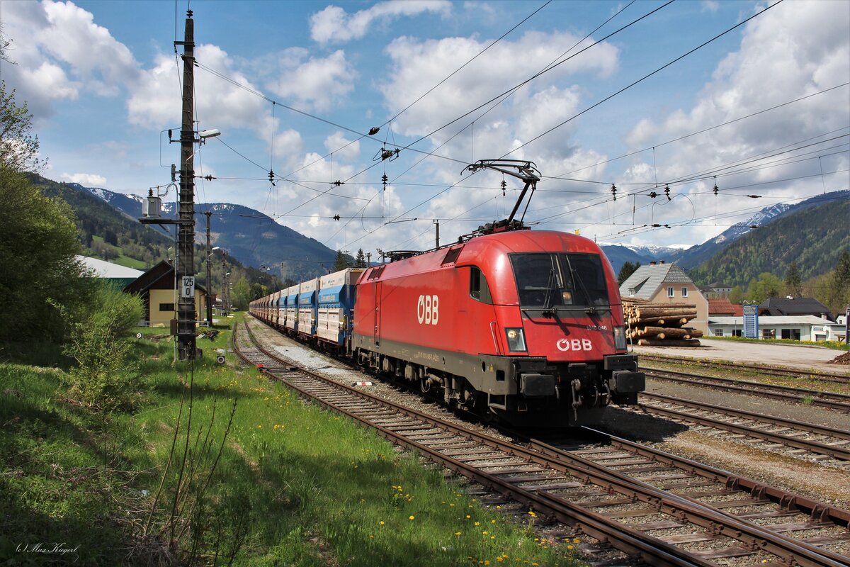1016 048 und 1116 088 zogen am 30.09.2021 einen KLV durch Retzbach-Zellingen gen Würzburg.